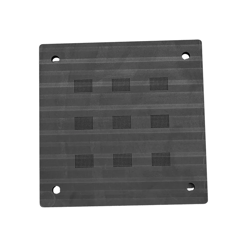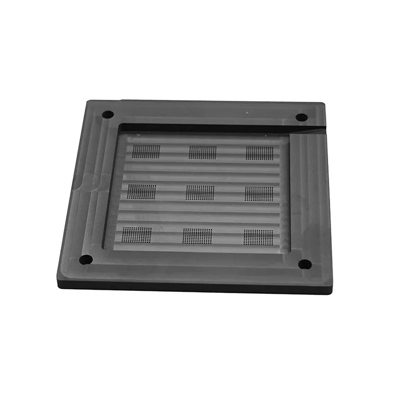 A2 : Nos dispositifs de placement de billes en graphite ont une planéité de surface contrôlée à moins de 0,002 mm/m et une rugosité de surface Ra≤0,4 μm. Cette planéité et cette douceur de surface extrêmement élevées garantissent un contact uniforme avec la puce et le substrat, évitant ainsi les défauts de placement des billes causés par les irrégularités de la surface.